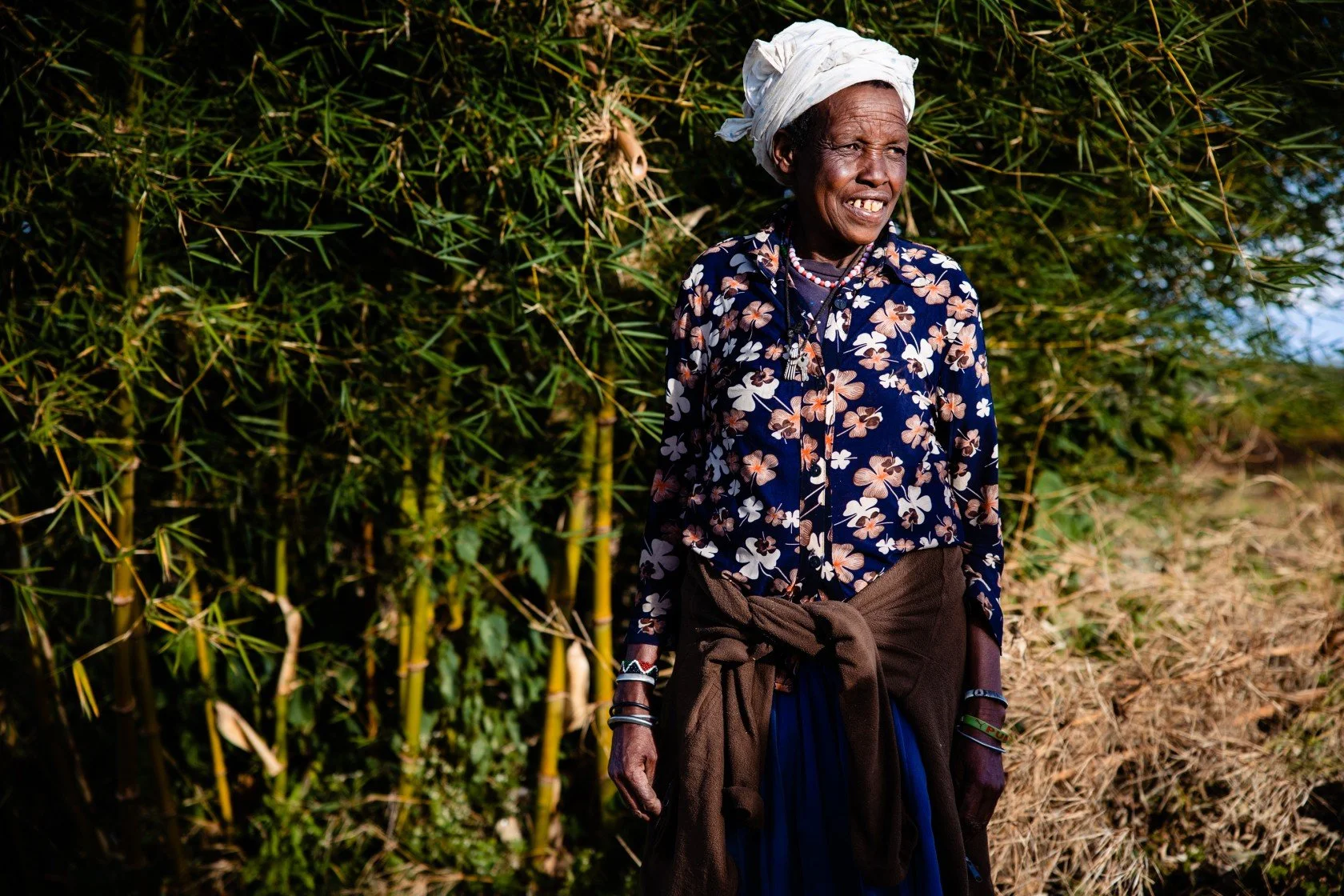 Mama Chemusto, one of our committed bamboo growers and basket makers along the Mosopisiek Trail in Kween District. Photo taken by Giorgios Voursoukis (2023)