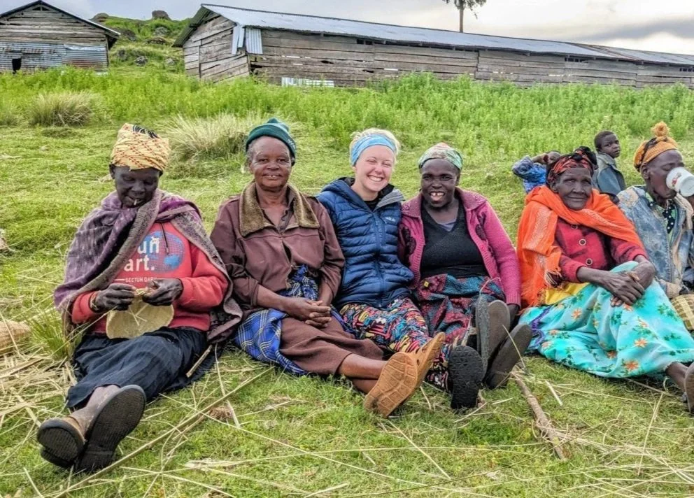 A guest from Canada with a group of bamboo weaving women in Yatui, along the Mosopisiek Trail